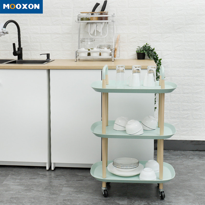 Multifunctional trolley: This is the multifunctional trolley cart you have been looking for. Made of high-quality metal or wooden sticks and PP plastic, the Mooxon rolling cart is more durable than other carts and measures 34.6 x 22.4 x 14.9 inches.